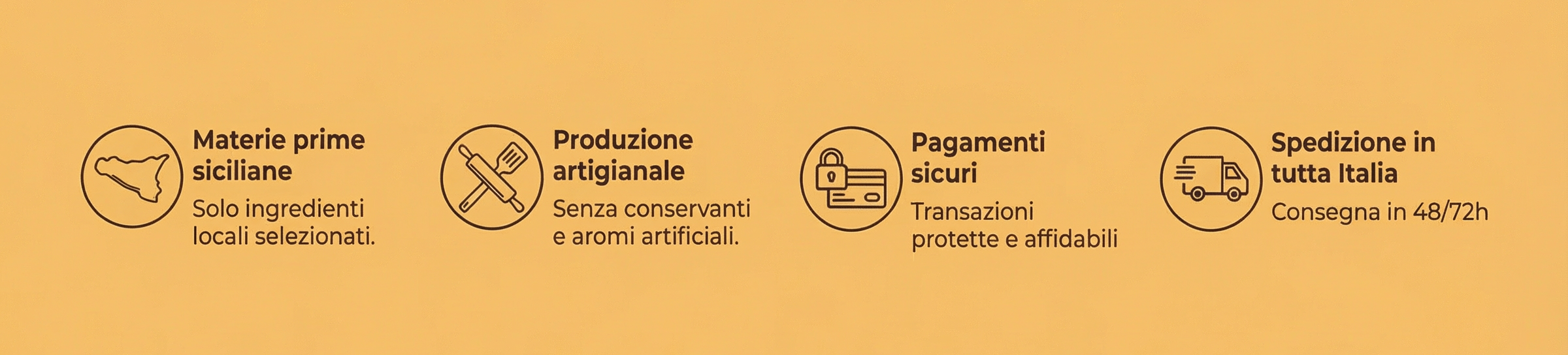 Senza aromi artificiali, utilizziamo solo mandorle integrali siciliane, valorizzando il vero gusto della mandorla e sostenendo l’economia agricola del territorio.