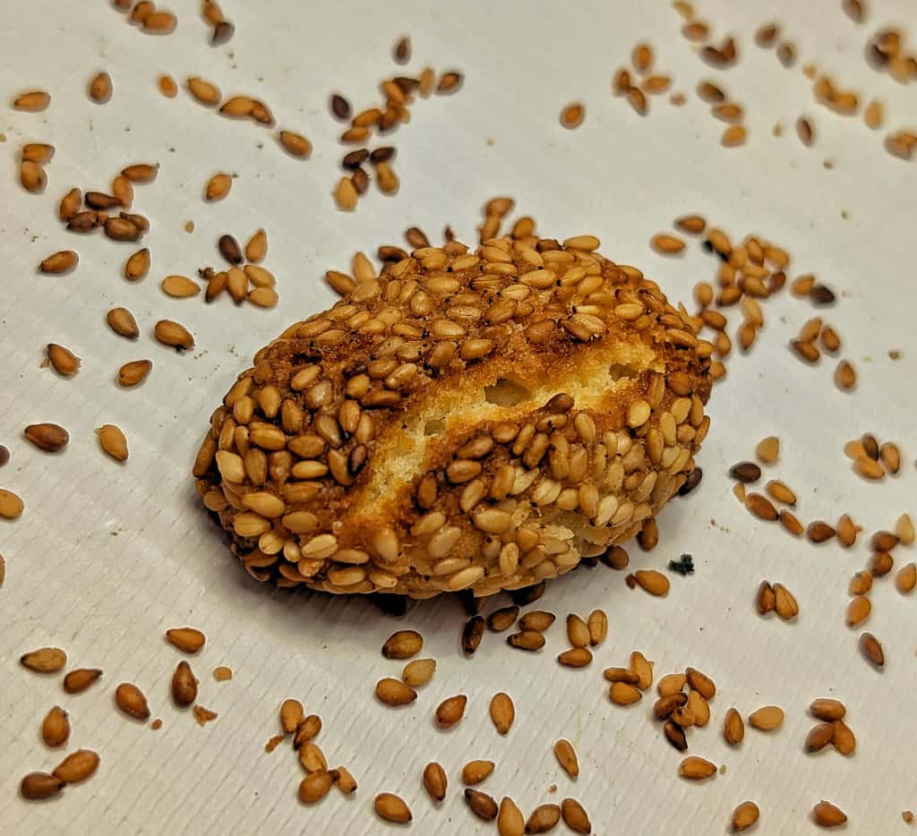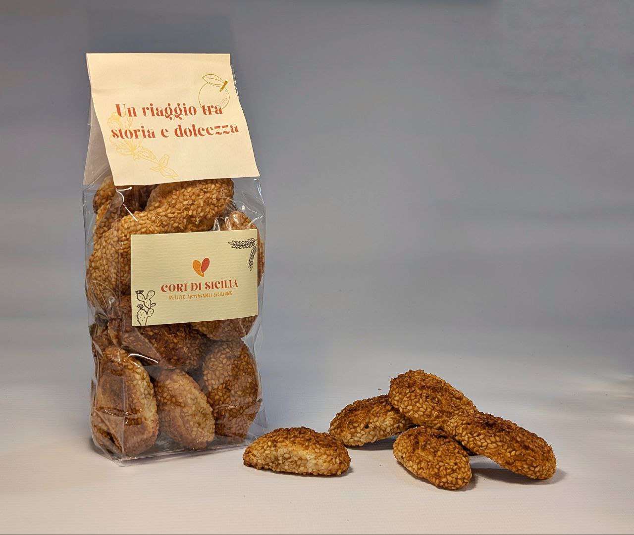 Un delizioso biscotto artigianale realizzato con pasta frolla fragrante e impreziosito da croccanti semi di sesamo.